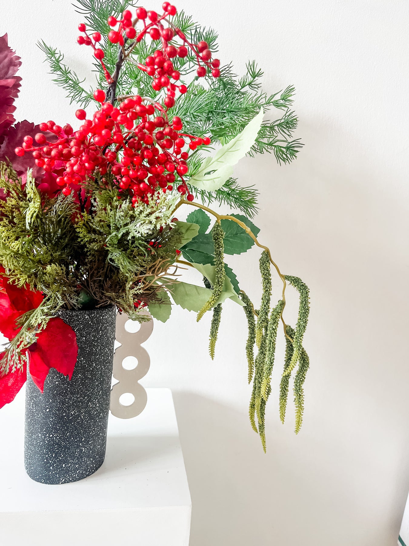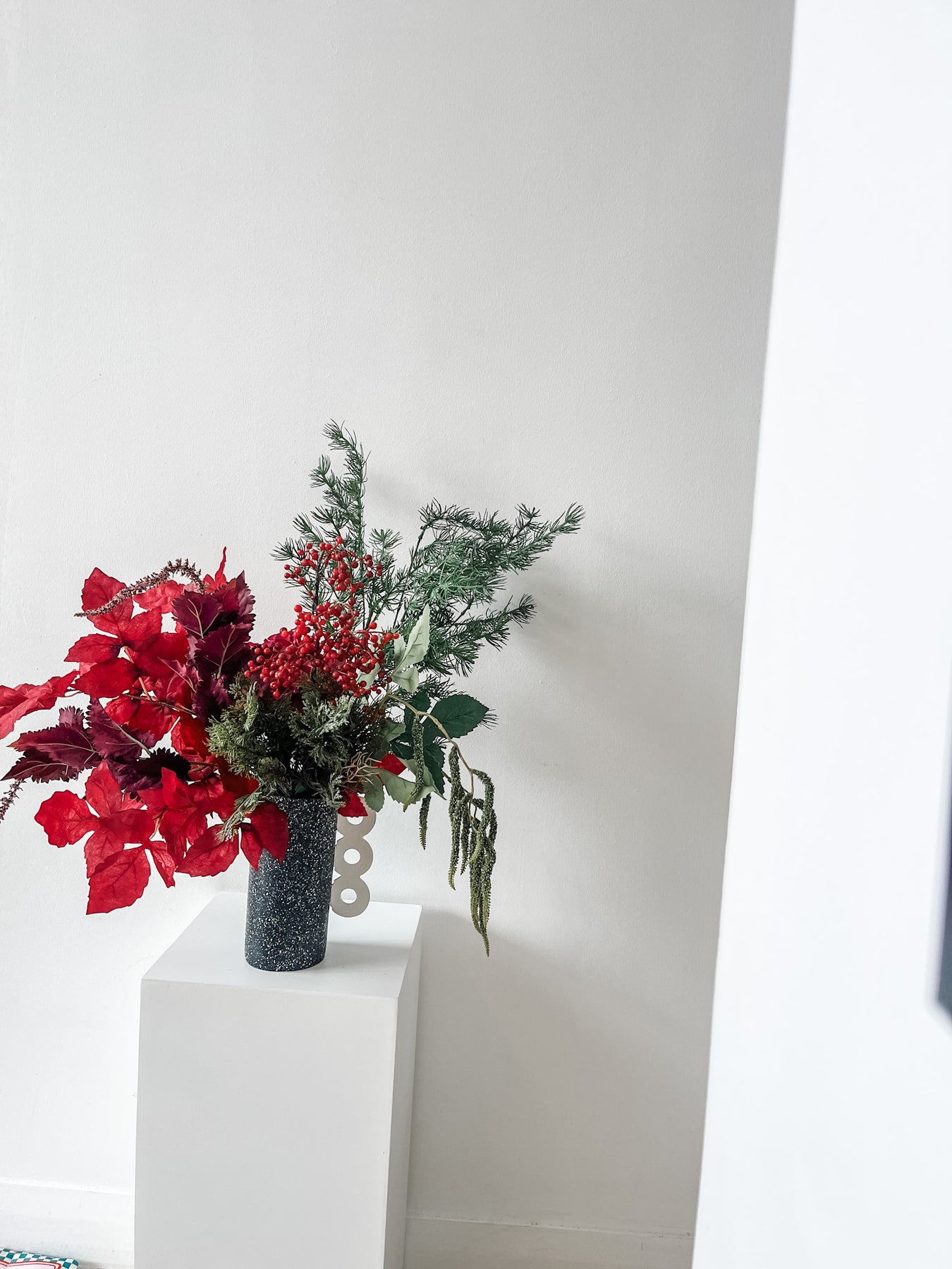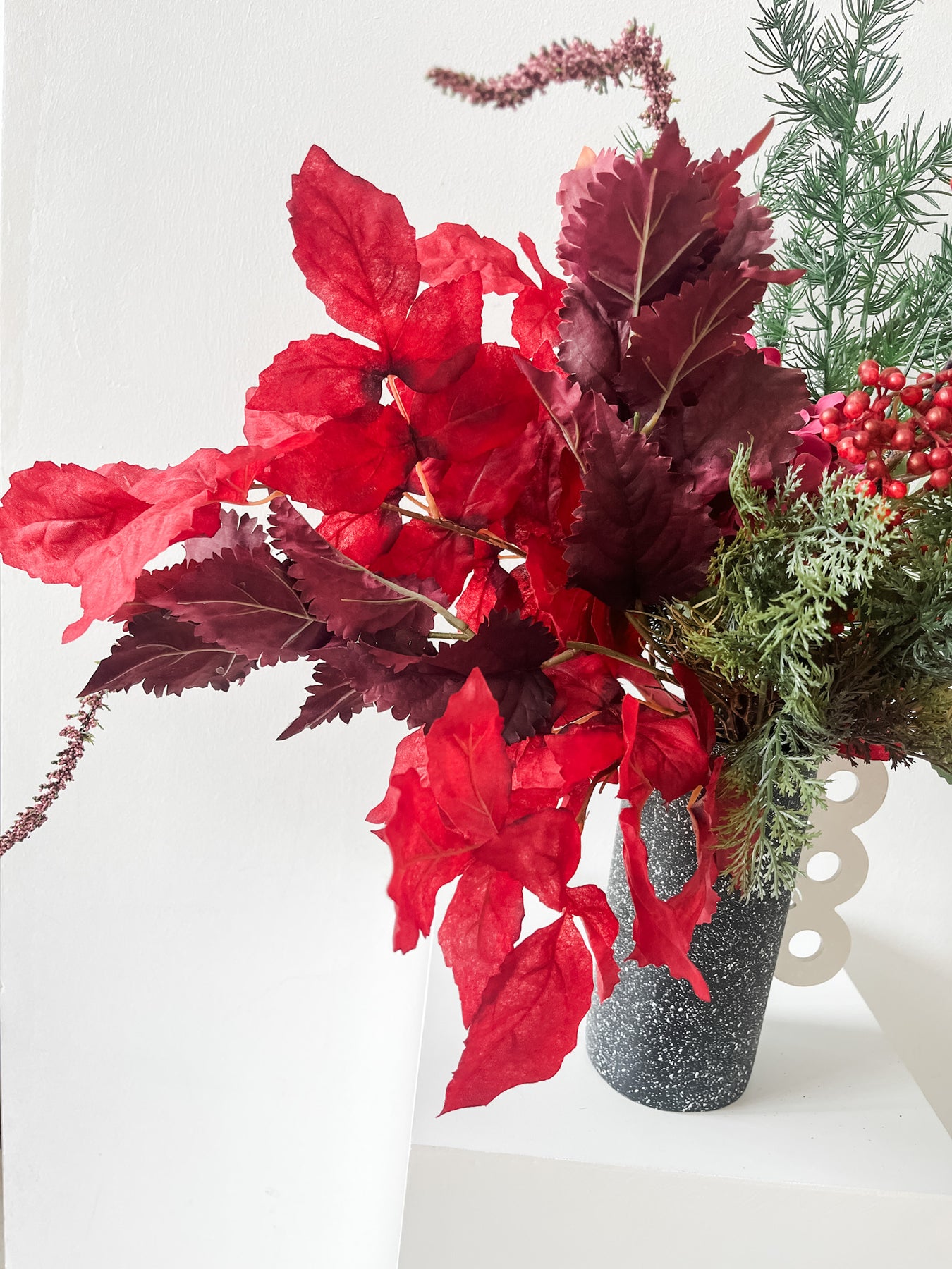 A unique display of hanging Amaranthus with the realistic Christmas pine and cypress. The classic Christmas colours makes the most eye-catching ornament in your home decor and elevates the festive mood. It also makes a luxurious Christmas gift for a special friend or family.